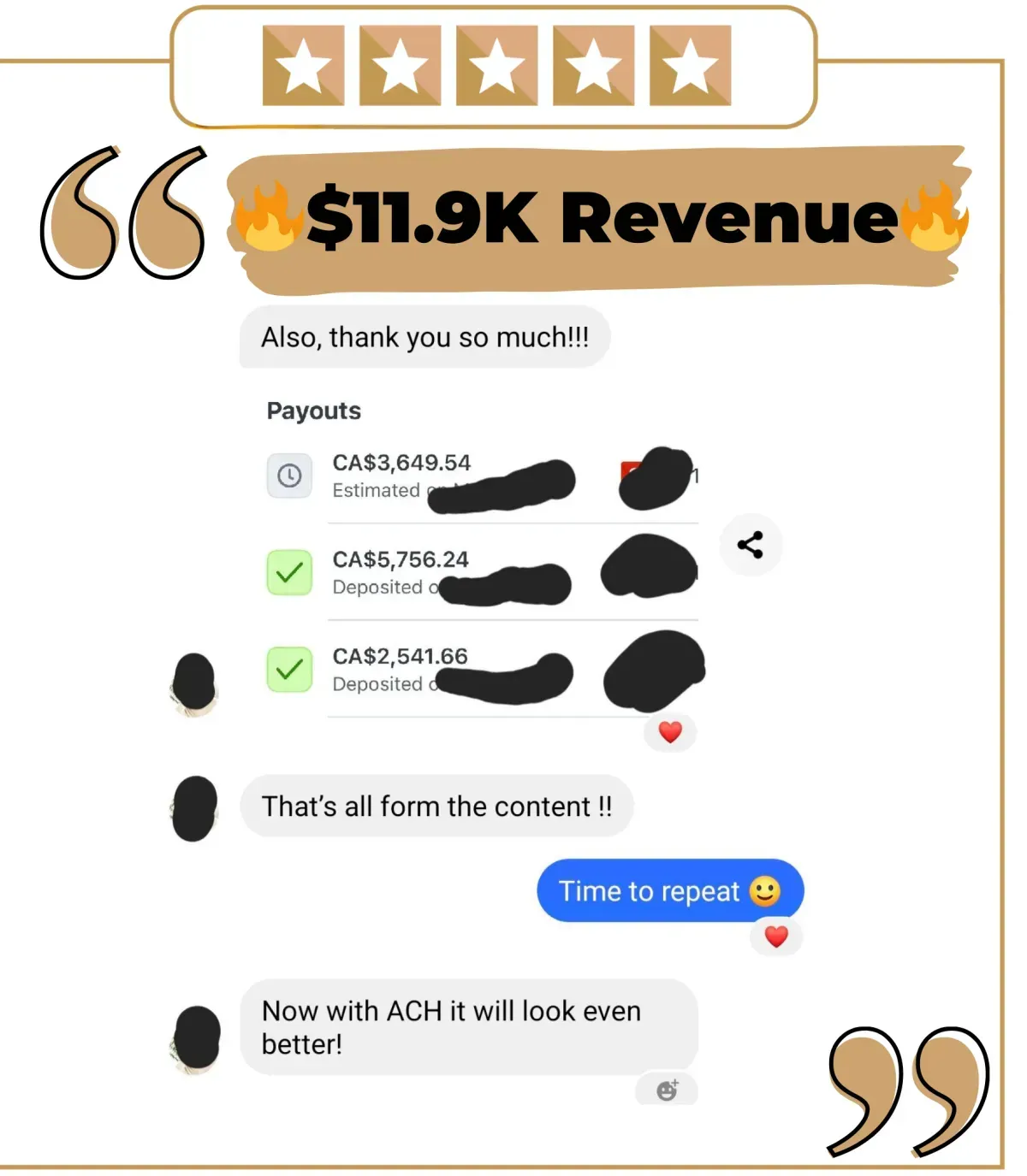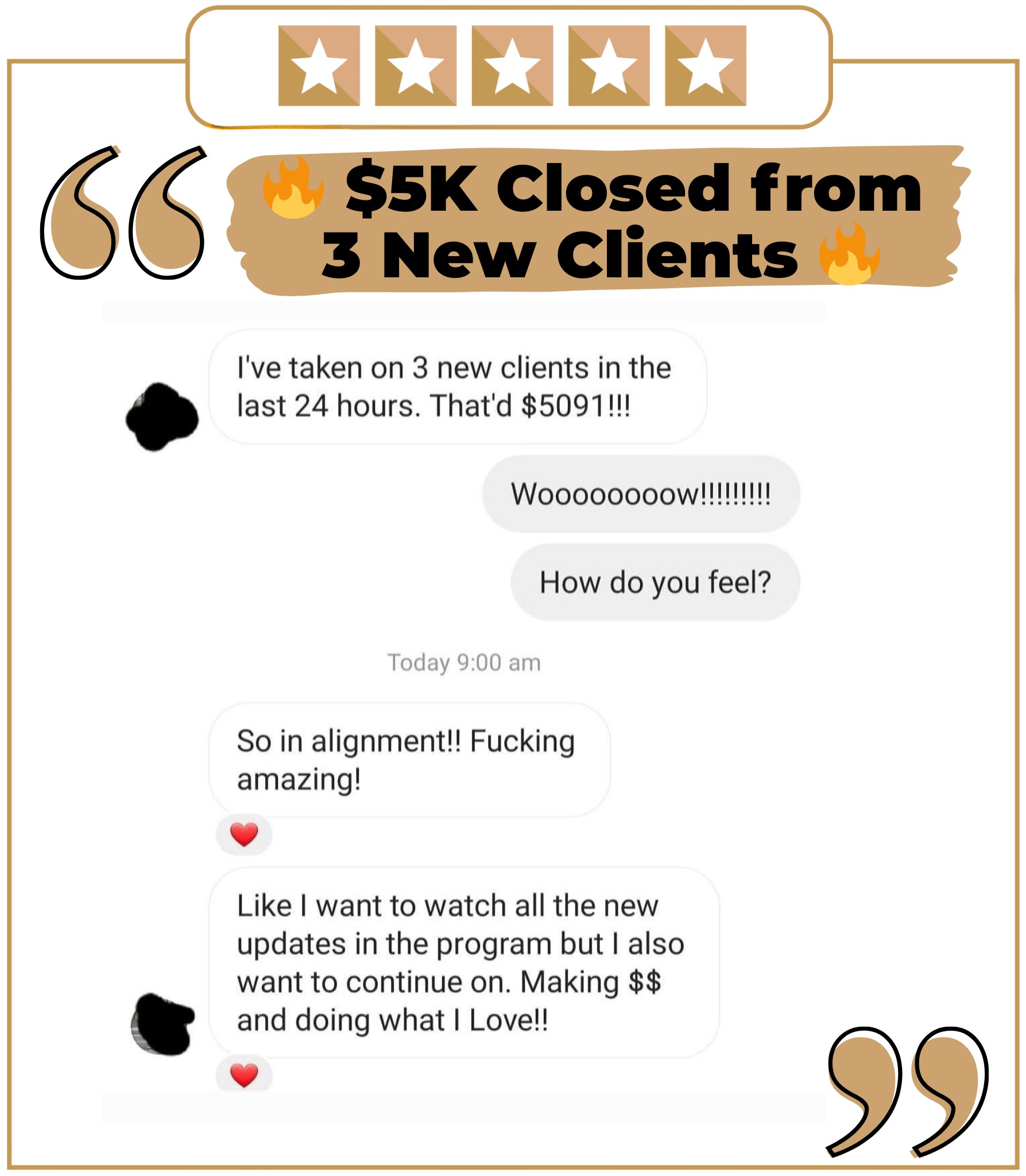 Turn every client into a raving fan with the ‘100K testimonial template™’ and learn how to conduct client success interviews, gather testimonials, 5-star reviews and turn them into powerful social media posts, videos and content. Even if you have no testimonials to start with or no paid clients.
