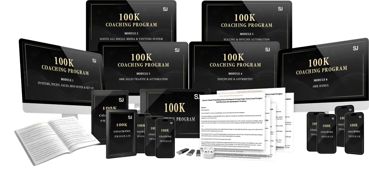 The 100K Coaching program foundations, systems, set-up, and scaling protocol to start to build your hypnosis from scratch, the right way - even with zero experience—using my personal ‘67 Inputs & Outputs System’. Without paying for ads, funnels, expensive tech, or giving away free sessions.
